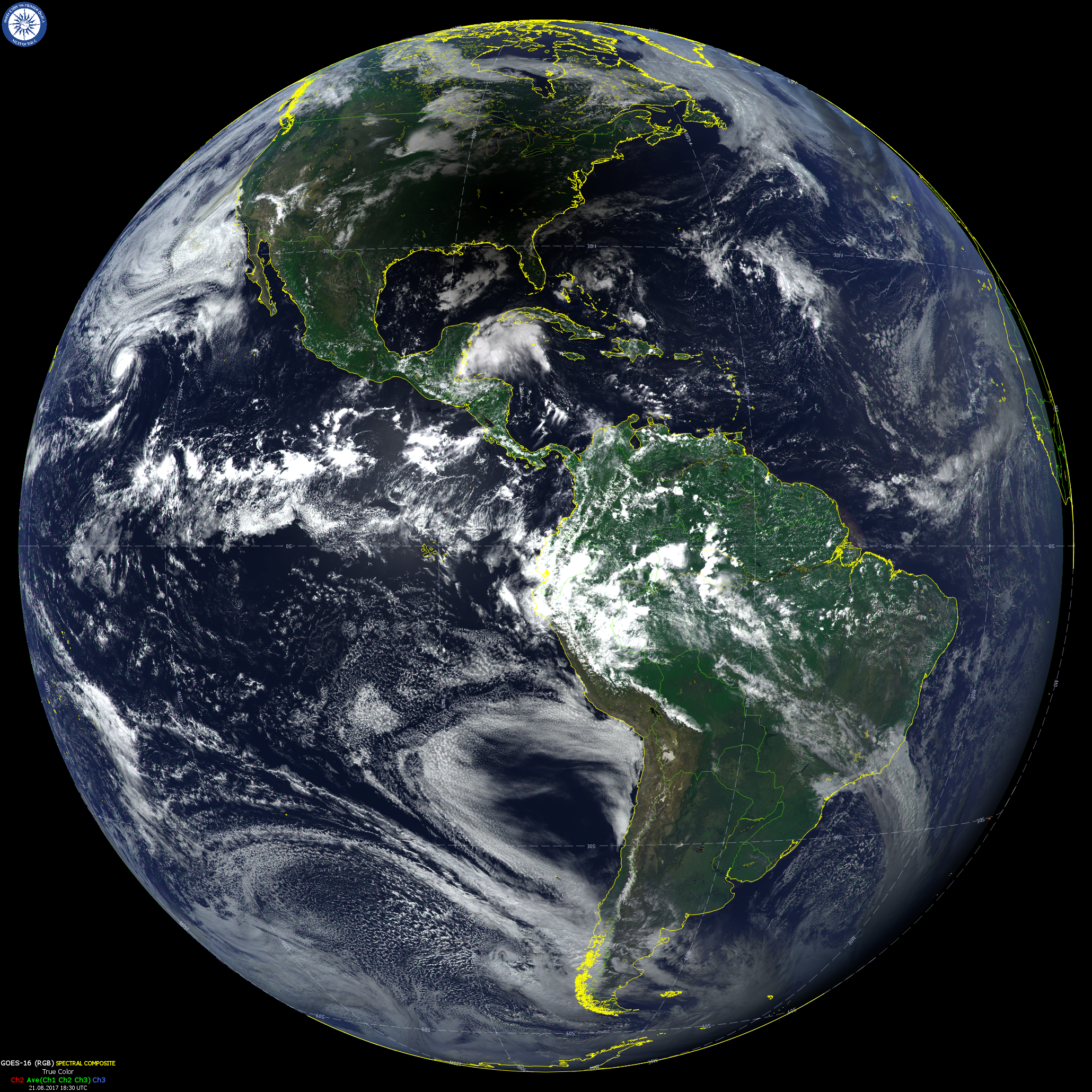 Y qué mejor para mirar, que la vedette de los meteorólogos de este lado del mundo por ahora: GOES-16. Y es que el satélite GOES-16 tiene una impresionante resolución espacial acompañado de una gran resolución temporal.